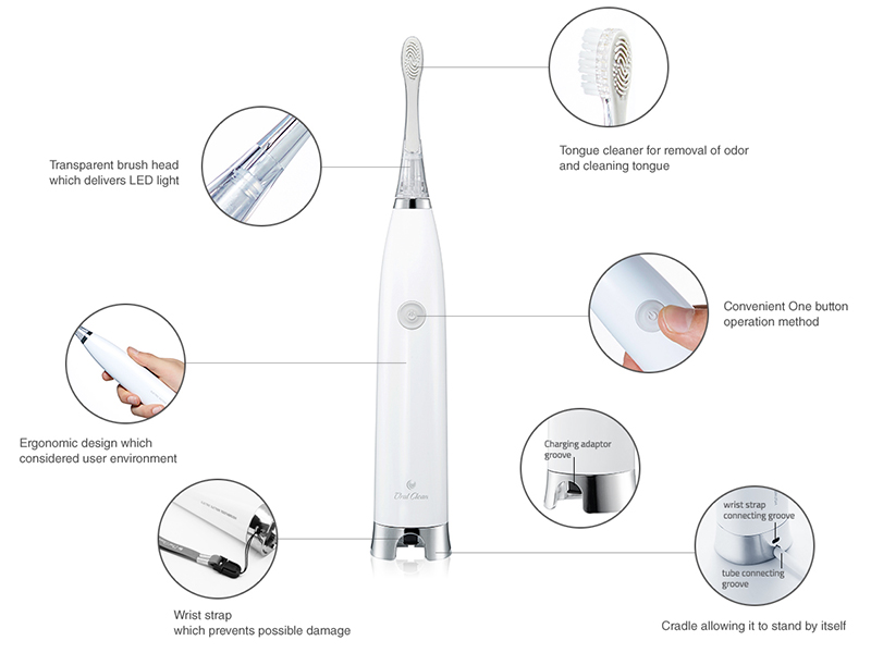 The light emanated from the LED gets transmitted into the oral cavity through the transparent brush head.